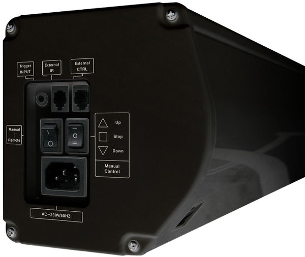 | Contrôle | RS232 pour intégration domotique Télécommande avec réglage fin de position et piles fournies Commande infrarouge intégrée Câble Trigger 12V (longueur : 10 mètres) Possibilité de capteur IR déporté (inclus) Commande manuelle (Up, Stop, Down) |