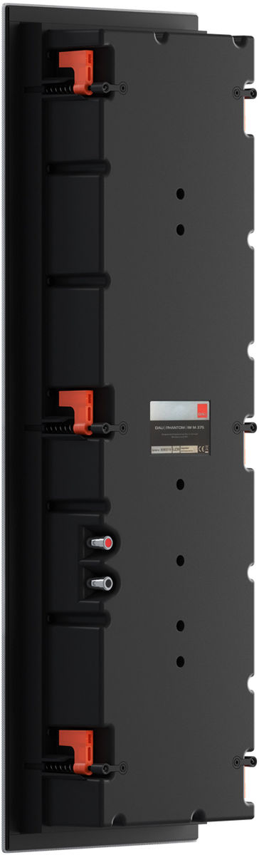 Conçue pour restituer le plus fidèlement possible la musique et les bandes sonores des films, l'enceinte encastrable Dali Phantom M-375 adopte une configuration 3 voies à charge close. Elle met en oeuvre un haut-parleur médium-grave de 17 cm de diamètre à membrane en fibre de bois reposant sur une suspension en caoutchouc assurant un large débattement. Celui-ci est associé à deux haut-parleurs passifs également équipés d'une membrane de 17 cm en fibre de bois. L'aimant employé par le haut-parleur médium/grave profite de la technologie Soft Magnetic Compound (SMC) propre au fabricant danois. Celle-ci permet d'abaisser significativement la distorsion du signal audio dans la bobine mobile en mettant en oeuvre un composé magnétique présentant une conductivité nettement inférieure à la plupart des alliages habituellement utilisés (ferrite ou néodyme, par exemple). La bobine mobile du haut-parleur est de plus placée dans un capuchon de cuivre pour limiter son inductance et ainsi réduire la distorsion des registres haut-médium et aigu.