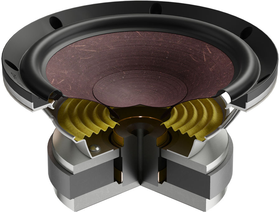 | Haut-parleurs | 1x haut-parleur médium/grave de 17 cm à membrane en fibre de bois avec technologie SMC 2x radiateurs passifs de 17 cm à membrane en fibre de bois 1x tweeter à dôme souple de 28 mm 1x tweeter à ruban de 1,7 x 4,5 cm |
