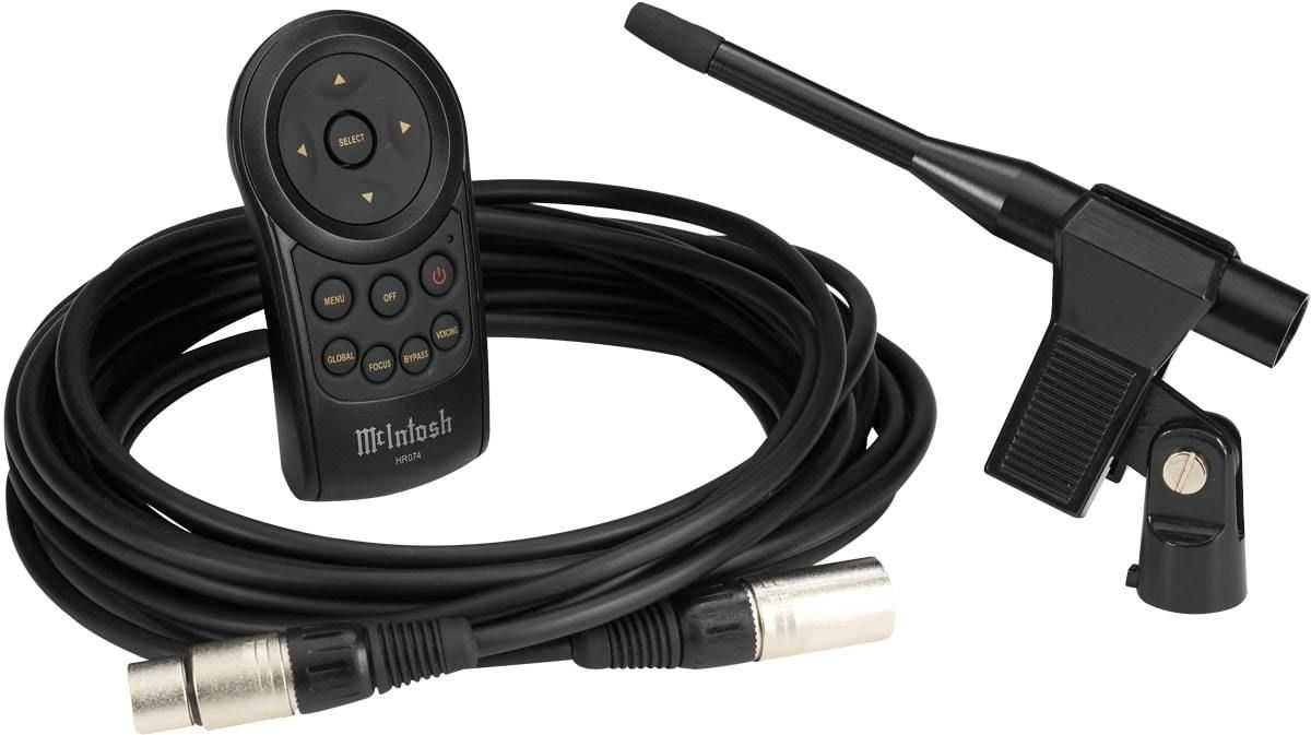 | Connectique | 1x connecteur XLR pour microphone (fourni) 1x entrée RCA stéréo 1x entrée XLR stéréo 2x sorties RCA filtrées (haut/bas) 2x sorties XLR filtrées (haut/bas) 1x connecteur RS-232C 4x connecteurs mini-jack 3,5 mm |