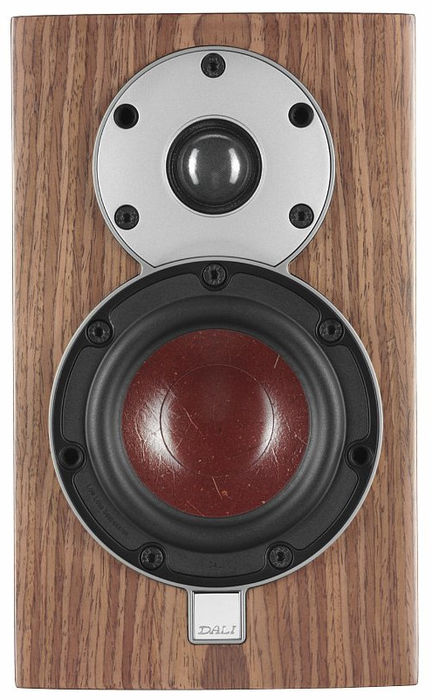 L'enceinte compacte Dali Menuet est un modèle 2 voies à charge bass-reflex, aux dimensions particulièrement réduites. Le fabricant Danois fait à nouveau la démonstration de son savoir-faire en livrant une enceinte aux lignes faussement classiques. Derrière la grille acoustique détachable, fixée sur le saladier de chaque haut-parleur, se cache une façade légèrement courbée. Encombrement minimal obligeant, le tweeter est encastré dans le saladier du haut-parleur de grave, ce qui a pour effet de rapprocher les points d'émission des deux transducteurs, au bénéfice de la cohésion sonore.